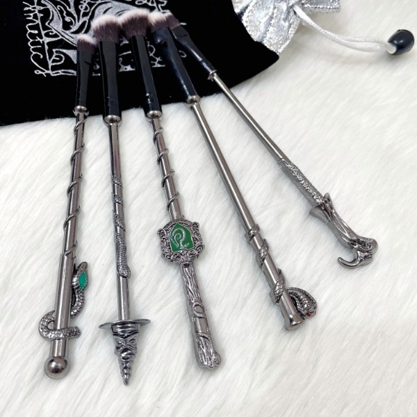 - Hogwarts Slythein House themed 5 Piece Make Up brush set in a drawstring bag.